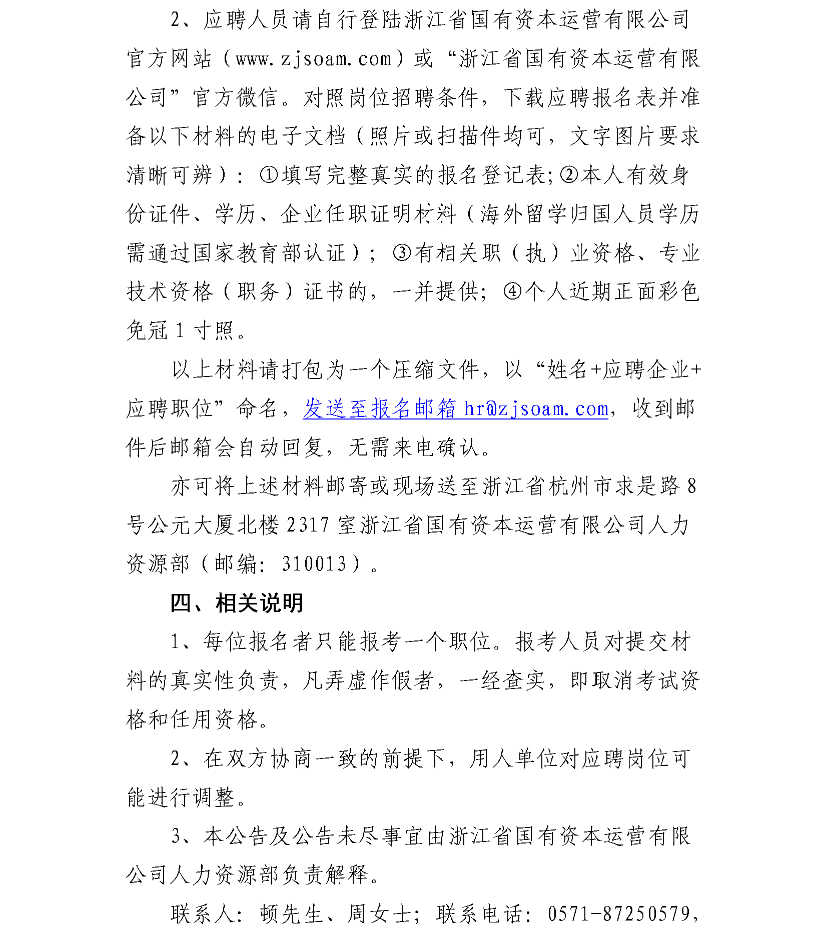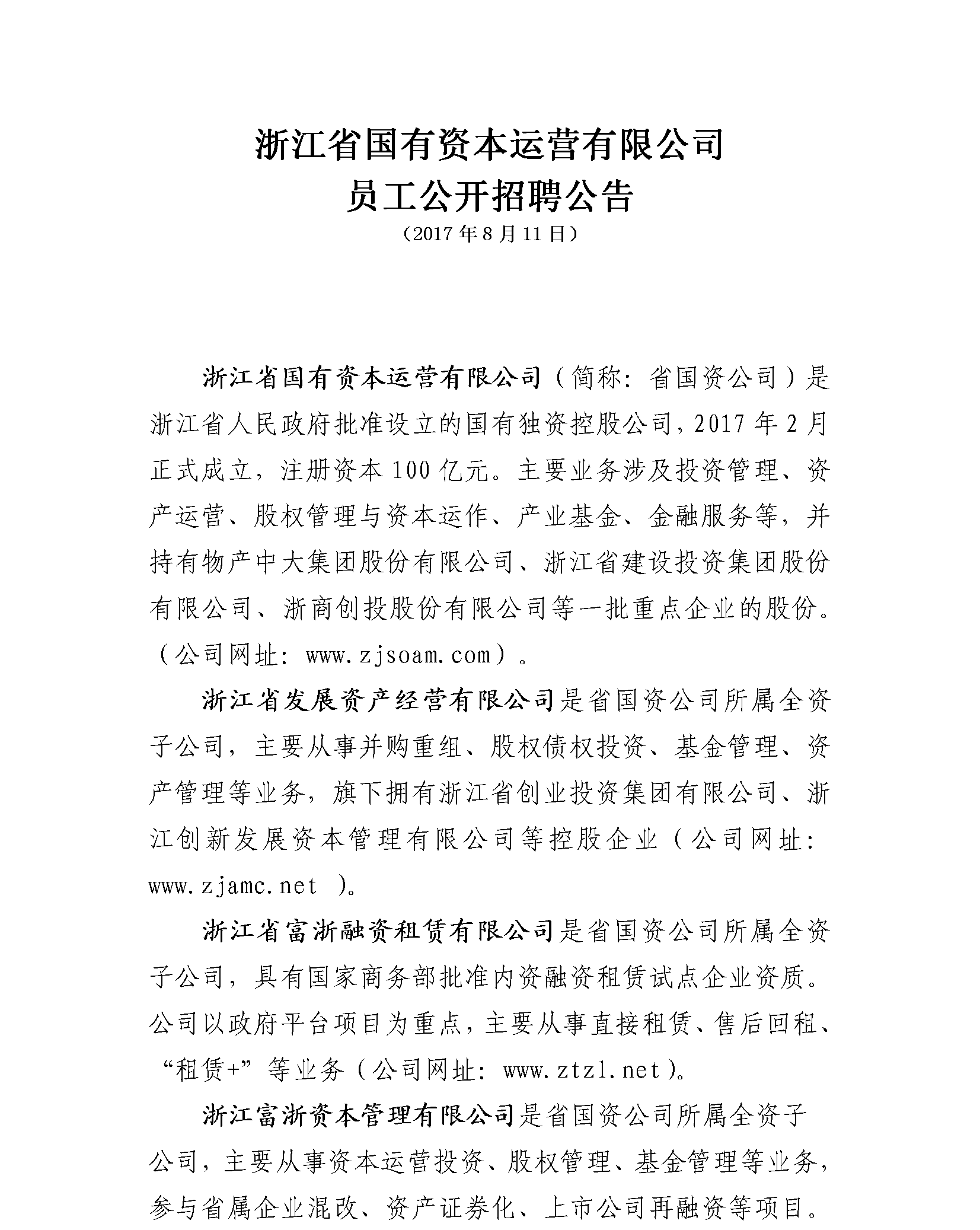 公司名称:浙江省国有资本运营有限公司 地址:杭州市求是路8号公元大厦 电话:0571-8725 1700 传真:0571-8725 1701 邮箱:zjsoam@zjzsco.com 邮编:310013